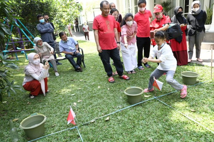 HUT RI ke 75 – Peserta lomba rumahan dalam rangka HUT RI ke 75, semuanya adalah cucu JK. Acara lomba dilaksanakan di halaman belakang rumah mantan wakil presiden itu.