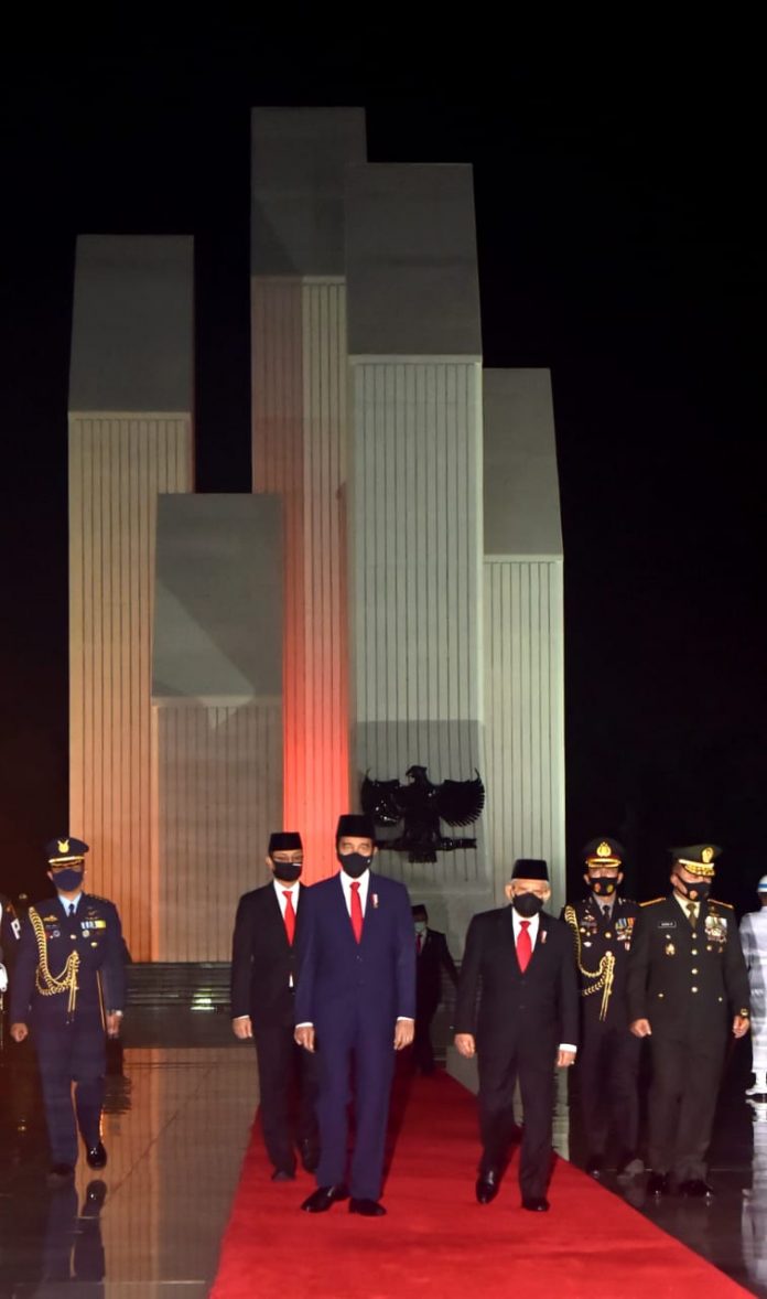 menitindonesia.com, JAKARTA – Presiden Joko Widodo memimpin Apel Kehormatan dan Renungan Suci di Taman Makam Pahlawan (TMP) Nasional Utama, Kalibata, Jakarta, pada Senin, 17 Agustus 2020 dalam rangkaian peringatan Hari Ulang Tahun ke-75 Republik Indonesia.