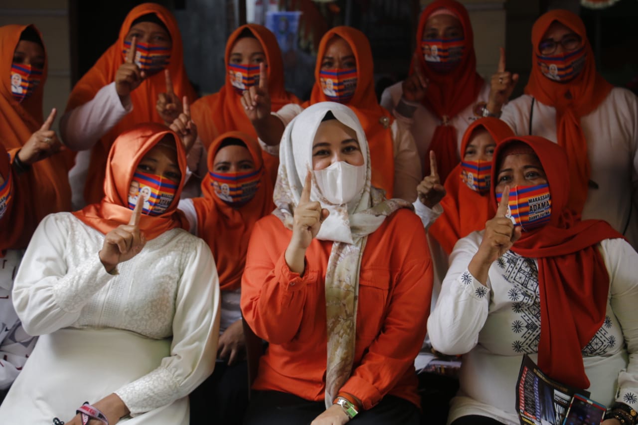 Nah, bagaimana cara Fatma memenuhi permintaan warga untuk foto bareng? Satu-satunya perempuan yang menjadi kontestan di Pilkada Makassar ini punya trik tersendiri untuk menghindari kerumunan. Pastinya tetap mengacu protokol kesehatan. Seperti setiap saat mengenakan masker.