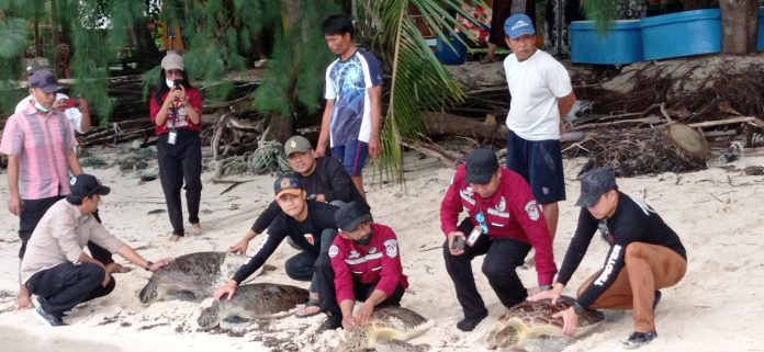 Bukti tangkap tangan penyu yang dieksploitasi. Keempat penyu ini sudah dilepas liarkan. (Foto: Ist)