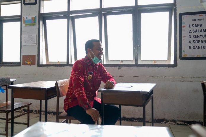 Gubernur termuda di Indonesia itu, pun berkeliling meninjau sekolah tersebut. Ia lalu memasuki salah satu ruang kelas yang pernah ia tempati belajar saat mengenyam pendidikan SMA.
