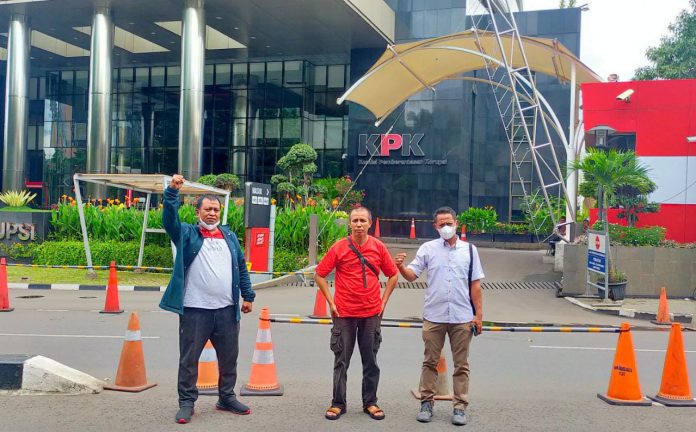 Aktifis LSM, PILHI Syamsir Anchi dan FAKK, Ahmad Mabbarani serta Asrul Nurdin, di depan Gedung Merah Putih KPK, Kuningan Jakarta Selatan. (Foto: Ist)