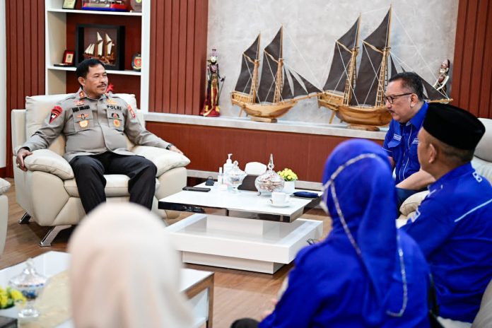 Kapolda Sulsel, Irjen Pol Nana Sudjana, menerima Ketua Demokrat Sulsel, H Ni'matullah RB dan Panitia Pelantikan. (Foto: Ist)