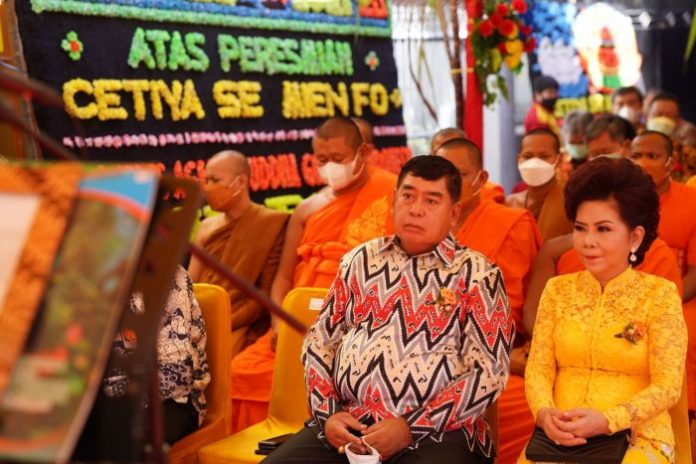 Mengawali sambutannya, Abdul Hayat mempersembahkan satu pantun khusus peresmian Cetiya She Mien Fo umat Buddha.