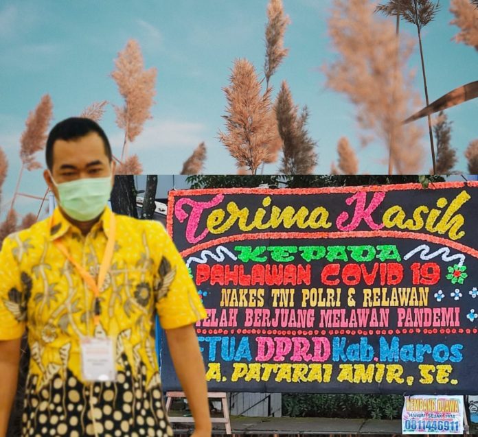 Ketua DPRD Maros, HA Patarai Amir, kirim karangan bunga untuk Pejuang dan Pahlawan Covid. (Foto: Ist)