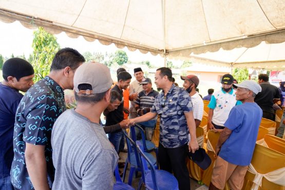 Gubernur Sulsel Andi Sudirman menyalami petani usai meresmikan jalan aspal beton di Pinrang. (Foto: Ist)