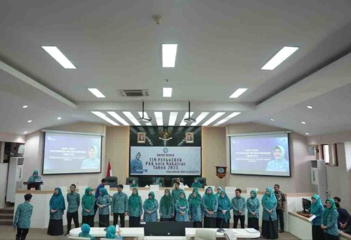 menitindonesia, MAKASSAR — Ketua TP PKK Kota Makassar Indira Yusuf Ismail mengukuhkan jajaran pengurus antar waktu TP PKK Kota Makassar. Pengukuhan dilangsungkan bersamaan dengan pelaksanaan rapat kerja TP PKK Kota Makassar, di Ruang Sipakatau Balai Kota Makassar, Jumat (24/2/2022).