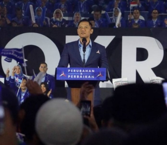 menitindonesia, JAKARTA – Ketua Umum Partai Demokrat, Agus Harimurti Yudhoyono (AHY), menyampaikan pidato politiknya di depan kader dan pendukung Partai Demokrat di Tennis Indoor Senayan, Jakarta, Selasa (14/3/2023).