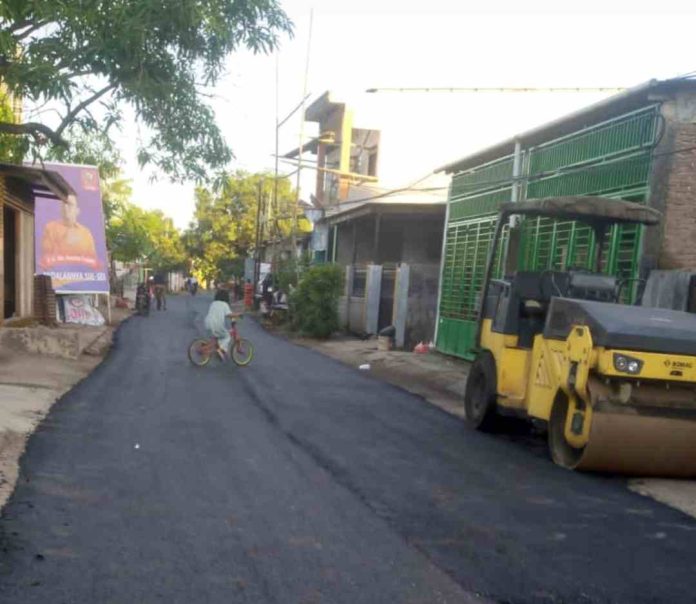 Perbaikan jalan yang kini dkerjakan oleh Dinas PU Kota Makassar sepanjang 350 meter dengan lebar sekira 5 meter. (*)