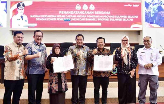 Pemerintah Provinsi Sulawesi Selatan (Pemprov Sulsel) bersama Badan Pengawas Pemilu (Bawaslu) dan Komisi Pemilihan Umum (KPU) melakukan penandatanganan Naskah Perjanjian Hibah Daerah (NPHD) untuk tahun anggaran 2023 dengan anggaran hibah Rp224 miliar.