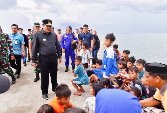 Foto : Pj Gubernur Sulsel, Bahtiar Baharuddin Berinteraksi dengan Anak-anak Nelayan Takalar