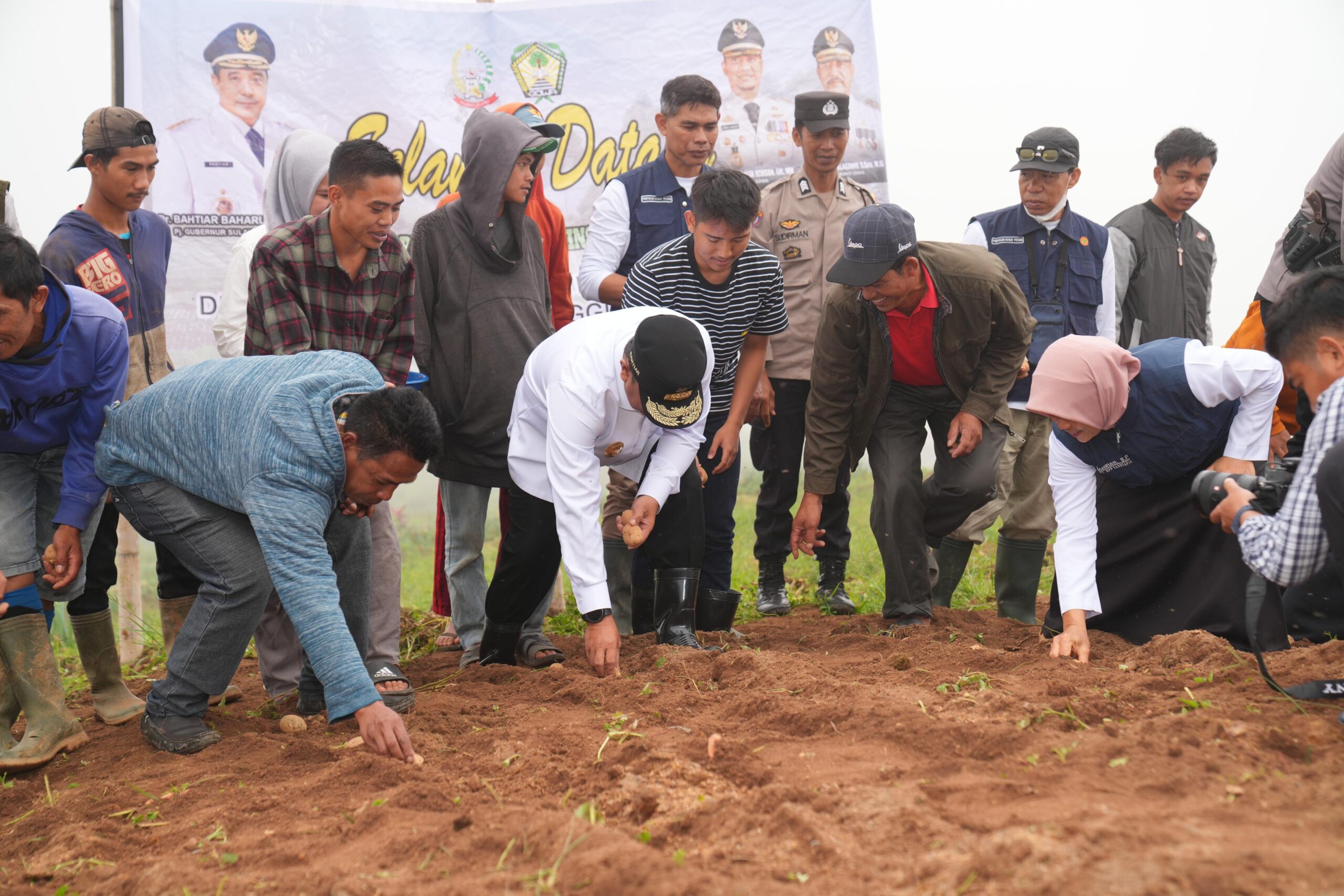 Foto : Pj Gubernur Sulsel, Bahtiar Baharuddin saat Melakukan Penanaman Kentang Bersama Petani di Kabupaten Gowa