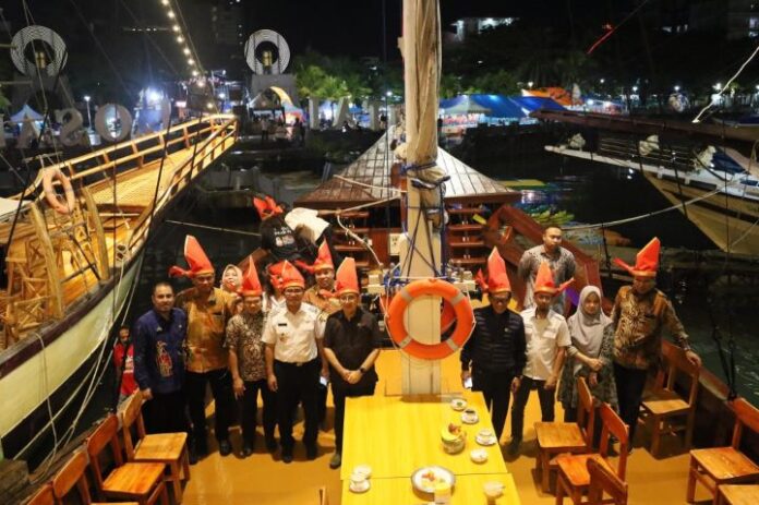 Sudah menjadi tradisi pemerintah kota, Danny Pomanto menjamu Menteri Kebudayaan Fadli Zon di atas Kapal Pinisi sembari menikmati angin sepoi-sepoi Pantai Losari di malam hari.