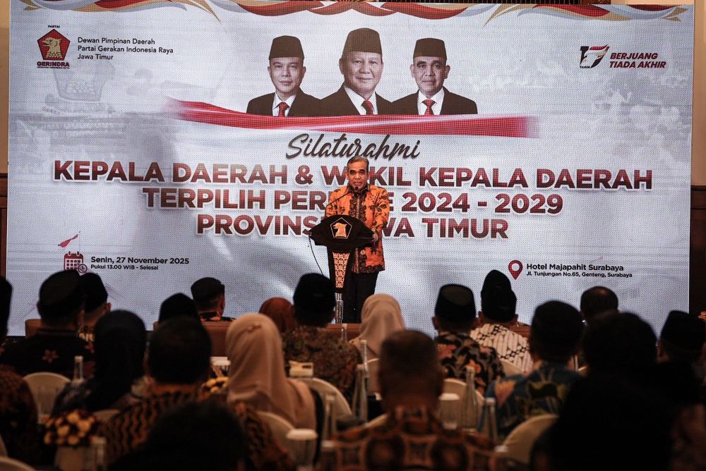 menitindonesia, JAKARTA – Sekretaris Jenderal DPP Partai Gerindra, Ahmad Muzani, menghadiri acara silaturahmi kepala daerah dan wakil kepala daerah terpilih se Provinsi Jawa Timur yang diusung oleh Partai Gerindra. Dalam pertemuan tersebut, Muzani menyampaikan salam hormat dari Presiden Prabowo.