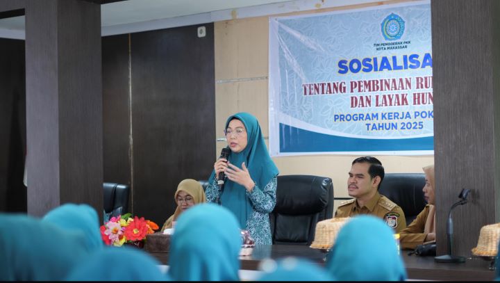 menitindonesia, MAKASSAR – Ketua Tim Penggerak (TP) PKK Kota Makassar, Melinda Aksa, resmi membuka kegiatan sosialisasi pembinaan rumah sehat dan layak huni di Kantor Kecamatan Panakukkang, Selasa (28/5/2025).