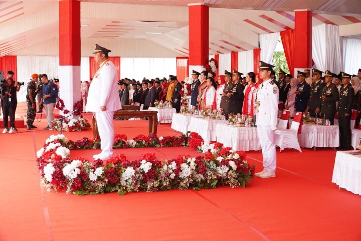 menitindonesia, MAROS — Pemerintah Kabupaten Maros menggelar upacara peringatan Hari Ulang Tahun (HUT) ke-80 Republik Indonesia di Lapangan Pallantikang, Minggu (17/8/2025).