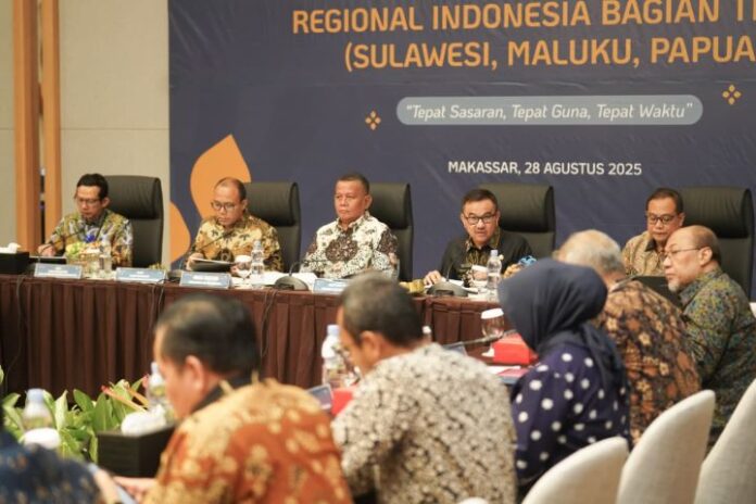 Sekdaprov Sulsel, Jufri Rahman saat mengikuti Rapat Koordinasi Penyaluran KUR 2025 Regional Indonesia Timur. (ist)
