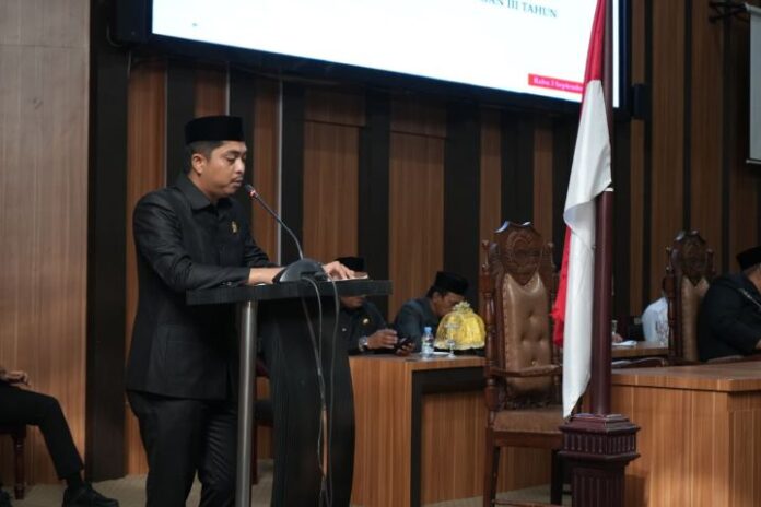 Anggota DPRD Maros, Mahmud Al Kaani saat membacakan hasil pembahasan KUA PPAS 2025. (ist)