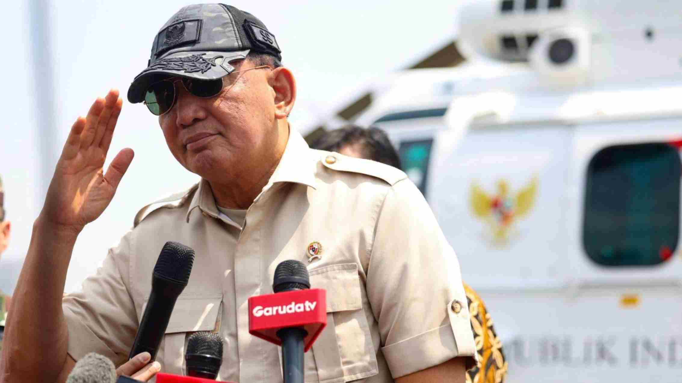 Menteri Pertahanan RI Sjafrie Sjamsoeddin memberi salam usai meninjau uji coba Helikopter H225M di kawasan Monumen Nasional (Monas), Jakarta, Senin (15/9/2025). (Foto: dok. Kemhan).