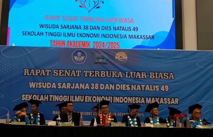 Sekolah Tinggi Ilmu Ekonomi (STIE) Indonesia Makassar menggelar Rapat Senat Terbuka Wisuda Sarjana ke-38 yang dirangkaikan dengan Dies Natalis ke-49, Rabu (19/11/2025)