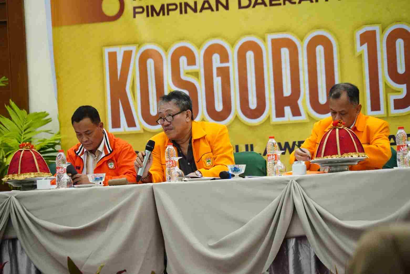 Pimpinan Musda Kosgoro 1957 Sulawesi Selatan memimpin sidang pleno di Makassar, Jumat (17/1/2026). Musda memutuskan menunda pemilihan ketua guna mematangkan penjaringan calon sesuai AD/ART organisasi.
