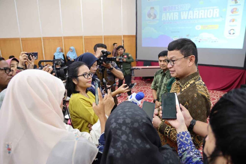 Kepala BPOM Taruna Ikrar menjawab pertanyaan wartawan usai Workshop AMR Warrior di Padang, menegaskan bahaya resistensi antimikroba sebagai pandemi senyap yang mengancam kesehatan publik.