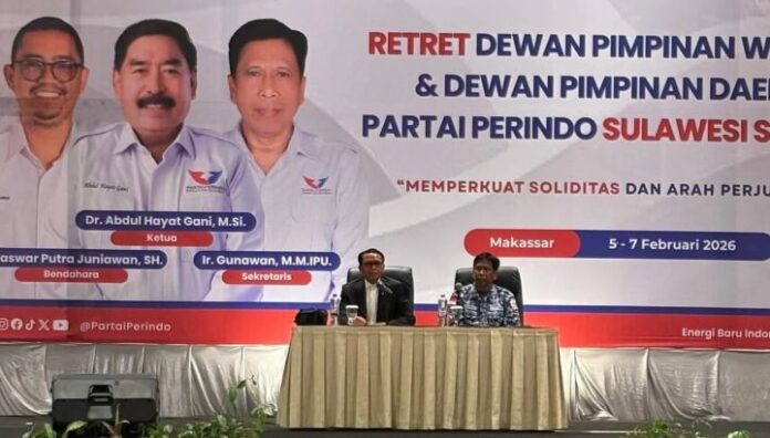 menitindonesia, MAKASSAR — Partai Persatuan Indonesia (Perindo) Sulawesi Selatan menggelar retret kader sebagai bagian dari penguatan internal menghadapi agenda politik ke depan. Mantan Gubernur Sulawesi Selatan, Nurdin Abdullah, dihadirkan sebagai pemateri utama dalam kegiatan tersebut.
