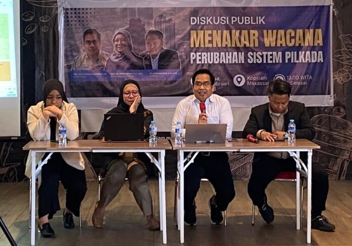 menitindonesia, MAKASSAR — Wacana mengembalikan mekanisme pemilihan kepala daerah (Pilkada) melalui Dewan Perwakilan Rakyat Daerah (DPRD) dinilai berpotensi mengubah secara drastis peta kekuasaan di daerah.
