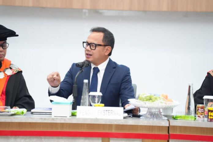 Wakil Menteri Dalam Negeri, Bima Aryapenguji menjadi penguji eksternal dalam ujian promosi doktor Ilmu Politik Bupati Maros, AS Chaidir Syam. (ist)
