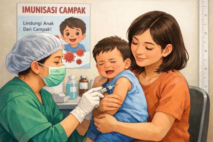 menitindonesia, JAKARTA – Kementerian Kesehatan (Kemenkes) meminta para orang tua tidak ragu membawa anak mengikuti vaksinasi campak. Selain aman, pemerintah memastikan stok vaksin Measles Rubella (MR) saat ini dalam kondisi mencukupi untuk program imunisasi nasional.