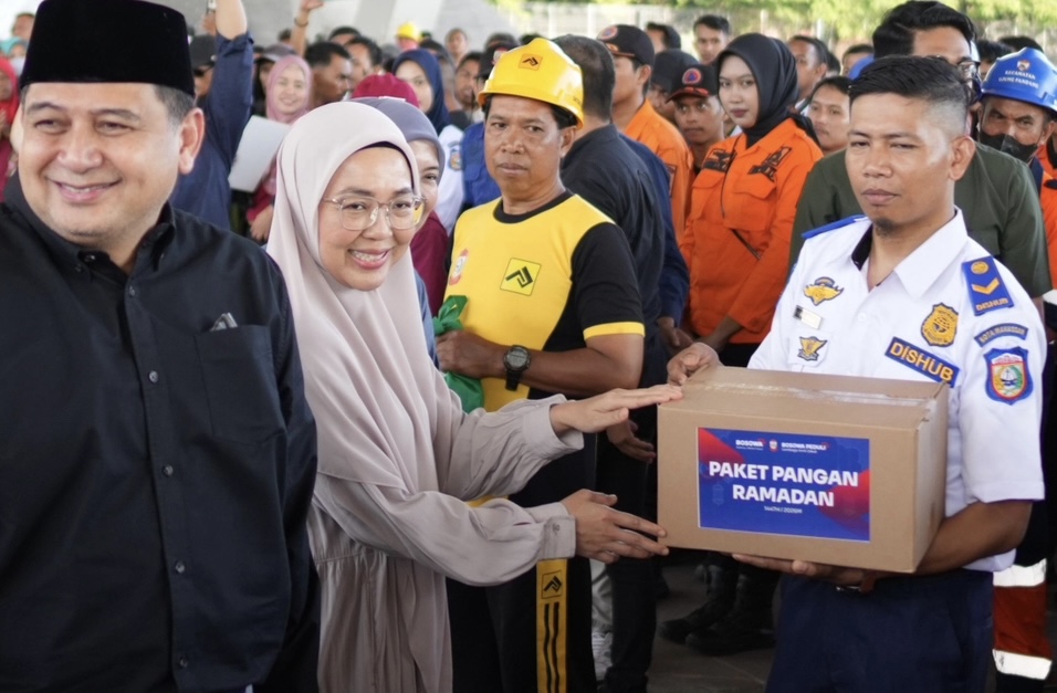 Melinda turut menyerahkan paket Lebaran kepada para petugas yang selama ini menjadi garda terdepan dalam menjaga kebersihan lingkungan kota.