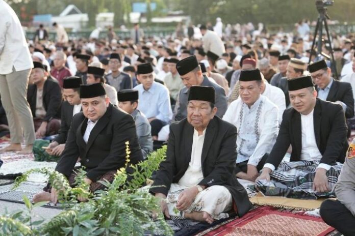 menitindonesia, MAKASSAR – Puluhan ribu warga Kota Makassar memadati Lapangan Karebosi untuk melaksanakan Salat Idulfitri 1447 Hijriah, Sabtu (21/3/2026).