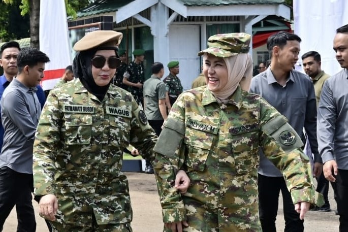 Wakil Wali Kota Makassar, Aliyah Mustika Ilham bersama Wakil Gubernur Sulsel, Fatmawati Rusdi saat menghadiri Pembukaan Latsarmil Komcad di Gowa. (ist)