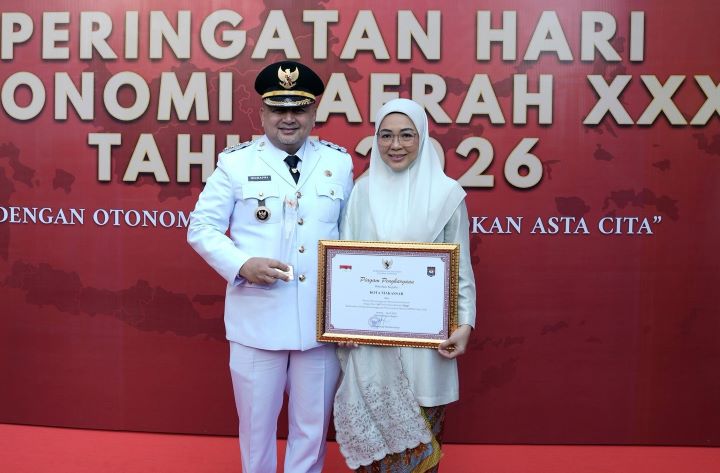 Penghargaan tersebut diserahkan langsung oleh Wakil Menteri Dalam Negeri Bima Arya Sugiarto kepada Munafri dalam Upacara Peringatan Hari Otonomi Daerah ke-30 di Plaza Kemendagri, Senin (27/4/2026).